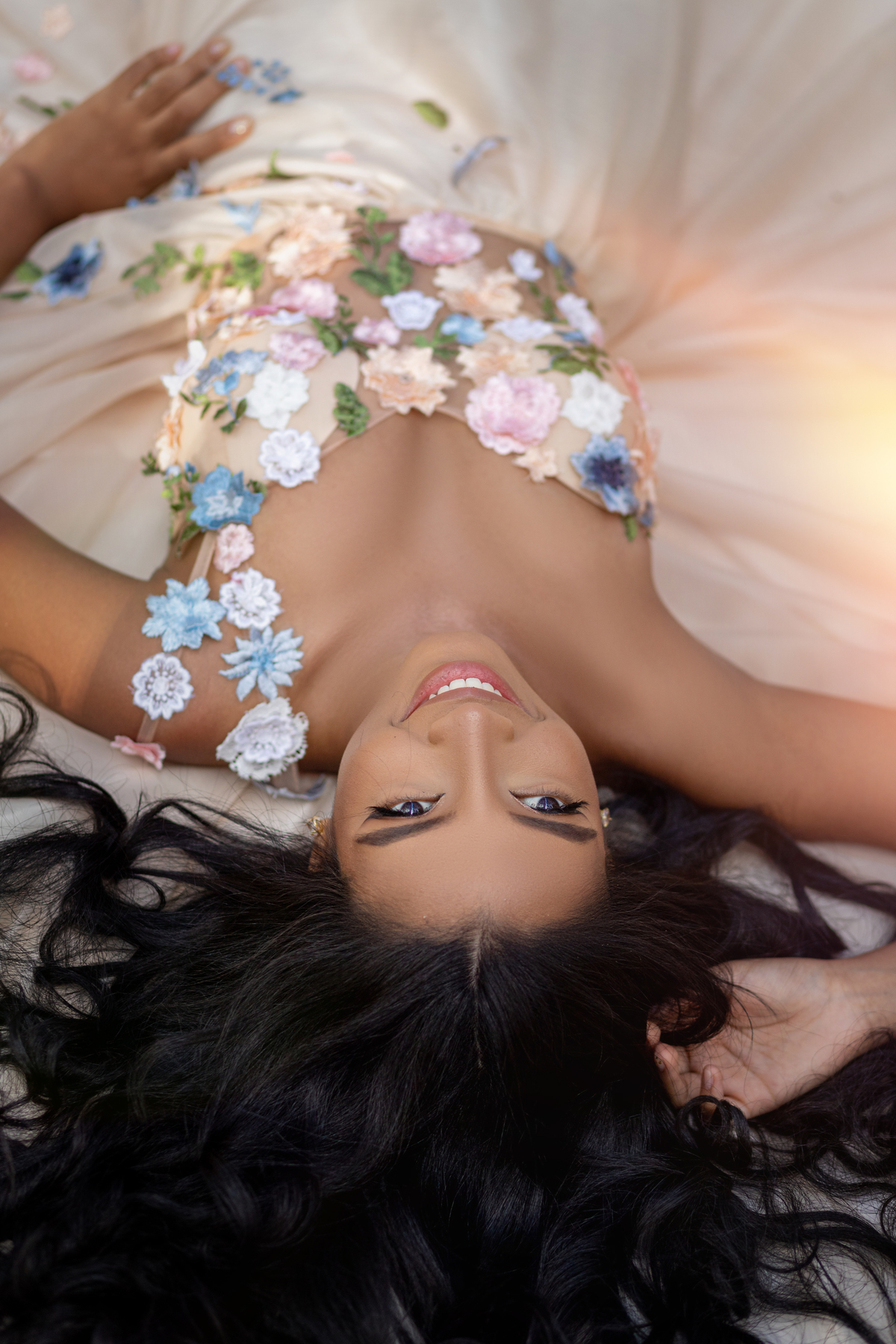 As flores aplicadas no vestido com tanta delicadeza e o lugar.... Tudo inspirado nela.